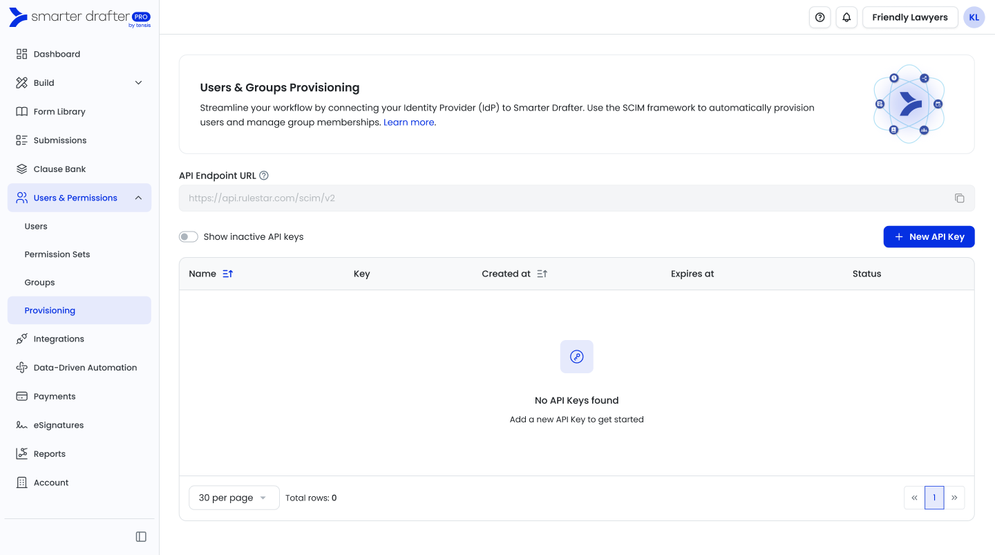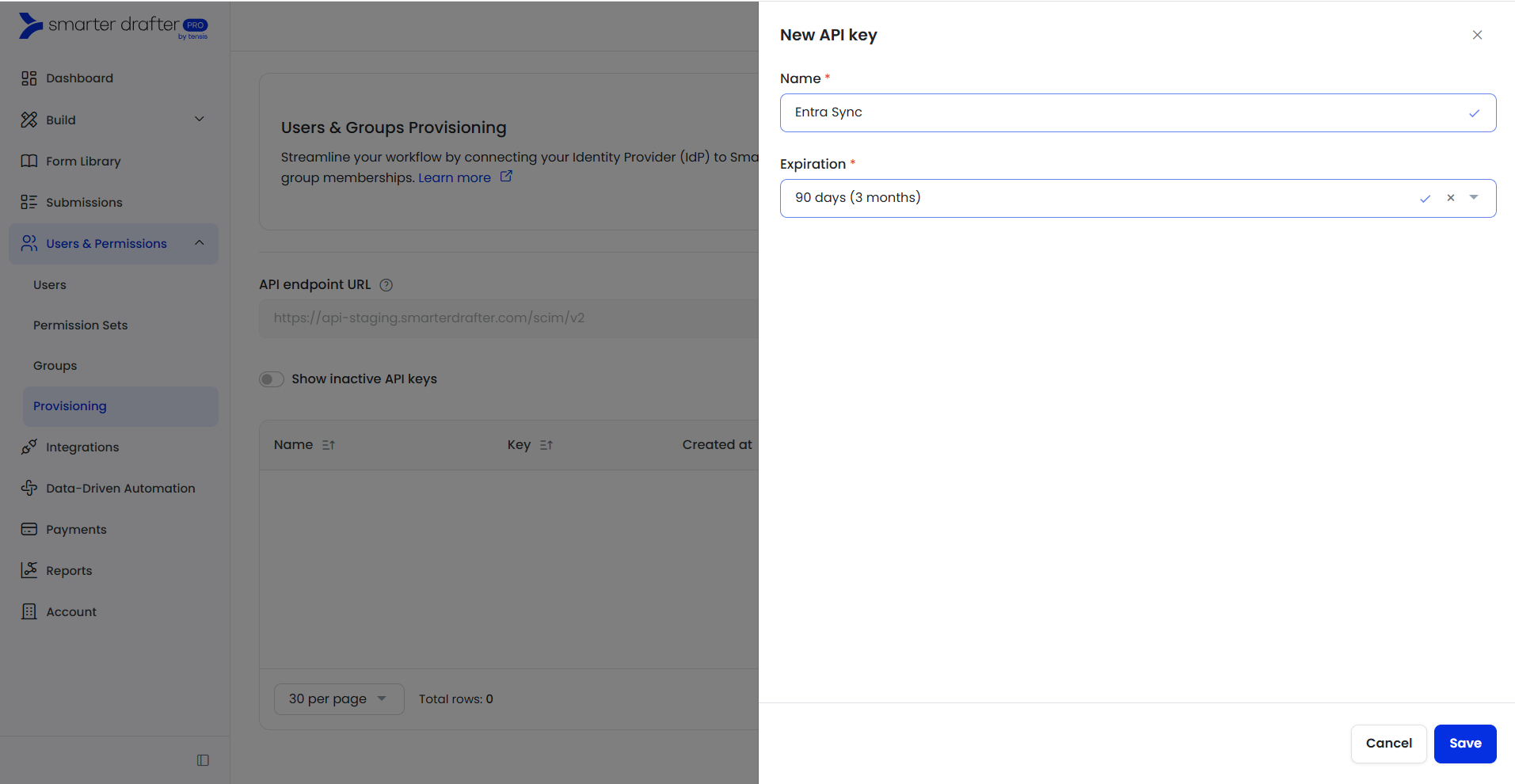 1. In Smarter Drafter Pro, navigate to Users & Permissions > Provisioning in the left-hand sidebar.