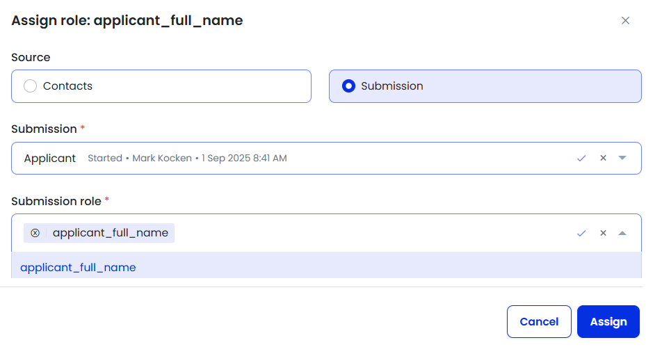- Click Assign. The contact is now linked to the role and any matching data will populate automatically.