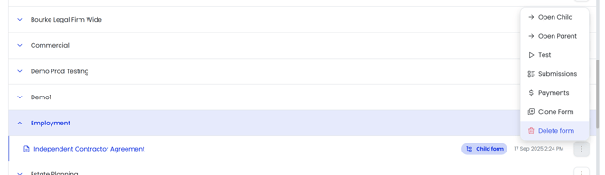 - Click the 3-dot more options icon next to the form and select Delete Form from the list.