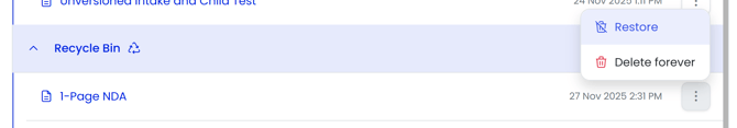 The form will remain in the Recycle Bin for 90 days before being permanently deleted. If needed, you can restore it within this time.