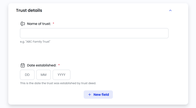 - (Optional) Use the Supporting Text field to provide extra guidance. This will appear as an additional line of text underneath the field, visible to the form-filler.