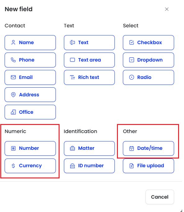 How to Add Number, Currency, and Date/Time Fields