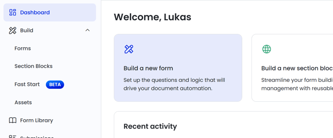 - Decide whether you'd like to start your form 'from scratch' or using Fast Start AI