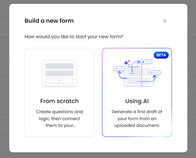 - Using AI: you upload a MS Word document and AI will create a first draft of your form for you.