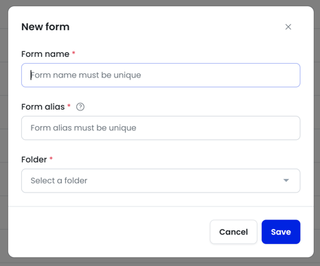 - The Form alias (a unique identifier for your form_ will automatically pre-fill based on your Form name.